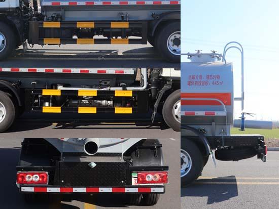 | 其它 | 該車專用裝置為罐體,用于糞便、污液、泥漿等液態污物的收集和清理作業;僅采用3360mm軸距;運輸介質:液態污物,罐體總容量:4.6立方米,罐體有效容積:4.45立方米;罐體截面形狀:罐體尺寸(長×長軸×短軸)(mm):3400×1650×1200;側后防護裝置材料均為:Q235B,側后防護裝置與車架連接方式均為螺栓連接,后防護裝置截面尺寸為:100×50mm,離地高度420mm;ABS型號及生產廠家:CM4XL-4S/4M/廣州瑞立科密汽車電子股份有限公司; | ||