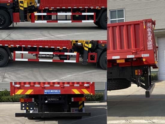 | 其它 | 該車用于貨物的起吊和托運,專用裝置貨箱和吊機;選裝欄板樣式,選裝后支腿,選裝座椅操作位置及支腿,隨車選裝駕駛室樣式;僅采用5850+1350(mm)軸距;側、后防護材料均為:Q235,連接方式均為:螺栓連接,后部防護截面尺寸(mm):120×80,后部防護離地高度(mm):480;ABS型號及生產廠家為:3631010-C2000/東科克諾爾商用車制動系統(十堰)有限公司,J ABS/焦作博瑞克控制技術有限公司;發動機/油耗值(L/100km)對應關系為:YCS06270-60/32.4;吊機型號/吊機重量(kg)/最大起升載荷(kg)分別為:TSQ300/5000/12000.安裝有具有衛星定位功能的行駛記錄儀,該車型加裝ETC車載裝置。 | ||