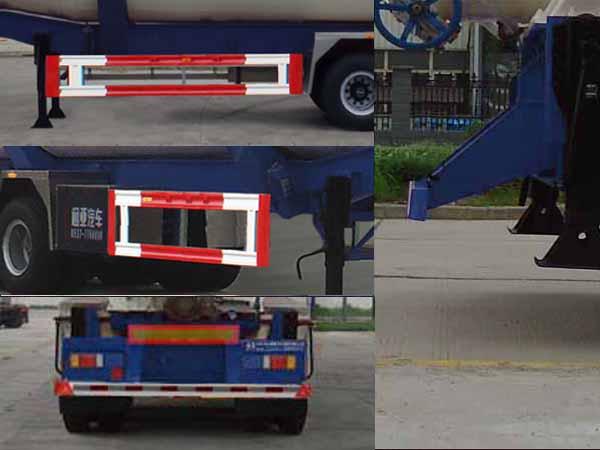 | 其它 | 罐體總?cè)萘?55立方米,罐體有效容積:52.4立方米;運(yùn)輸介質(zhì):煙煤粉,介質(zhì)堆密度:570千克/立方米,罐體長(zhǎng):12250mm,前端直徑:2300mm,后端直徑:2500mm.ABS系統(tǒng)生產(chǎn)廠家:廣州瑞立科密汽車電子股份有限公司,梁山順安達(dá)汽車科技有限公司,山東梁山德爾福汽車科技有限公司,型號(hào):CM2XL-4S/2K(4S/2M),SAD-ABS4S/2M,DEF-ABS4S/3M;側(cè)面及后下部防護(hù)裝置所用材料材質(zhì)為:Q235,側(cè)面及后下部防護(hù)裝置與車輛連接方式均為:螺栓連接或焊接,后部防護(hù)裝置的主要尺寸參數(shù):斷面尺寸(mm)為120×68,離地高度為:500mm.頂部封閉不可開槽,后部不可開啟. | ||