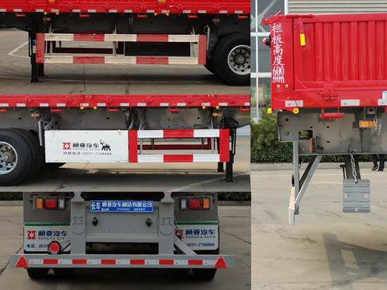 | 其它 | 卸貨方式為:側卸;安裝有手動鎖緊機構;選裝前擋樣式,選裝側面樣式(五開門或六開門)及欄板樣式(豎瓦楞),選裝后尾樣式,選裝欄板結構為下開門,吊開門結構,選裝包角樣式及合頁樣式;ABS系統生產廠家:廣州瑞立科密汽車電子股份有限公司,梁山順安達汽車科技有限公司,廣州市西合汽車電子裝備有限公司,山東梁山德爾福汽車科技有限公司,型號:CM2XL-4S/2M,SAD-ABS4S/2M,XH-GQ4S2M-E01,DEF-ABS4S/3M;側面及后下部防護裝置所用材料材質為:Q235B,側面防護裝置與車輛連接方式為螺栓連接,后下部防護裝置與車輛連接方式為焊接,后部防護裝置的主要尺寸參數:斷面尺寸(mm)為140×50,離地高度為:440mm; | ||