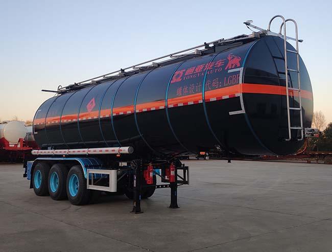 | 其它 | 采用適用于牽引危險品運輸半掛車的牽引車,危險貨物運輸車輛類型:FL型,準運介質的最大密度:974千克/立方米;罐體總容量:33.69立方米,罐體有效容積:32立方米,該車加裝保溫層,保溫層內部罐體外形尺寸為:長9500mm,罐體為鵝頸式,前端直徑:2060mm,后端直徑:2220mm,保溫層厚度為:50mm,罐體(含保溫層)尺寸長9600mm,前端直徑:2160mm,后端直徑:2320mm,保溫層厚度為:80mm,罐體(含保溫層)尺寸長9660mm,前端直徑:2220mm,后端直徑:2380mm;該車加裝空氣懸架,安裝盤式制動器;EBS系統生產廠家:廣州瑞立科密汽車電子股份有限公司;EBS型號:CM-TEBS;側面及后下部防護裝置所用材料材質均為:Q235,側面及后下部防護裝置與車輛連接方式均為:螺栓連接,后部防護裝置的主要尺寸參數:斷面尺寸(mm)為120×68,離地高度為:500mm. | ||