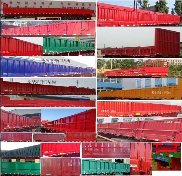 | 備注 | 卸貨方式為:側卸;安裝有手動鎖緊機構;選后組合燈為矩形樣式,選裝后霧燈圓形樣式,選裝尾部標志板安裝位置,每側可選4扇門,5扇門,選裝欄板結構為下開門,吊開門結構,橫瓦楞,豎瓦楞,方管十字花樣式,選裝前檔板結構,選裝側面樣式,選裝后部樣式,立柱可選內插,外插樣式,選裝包角樣式及合頁樣式;ABS系統生產廠家:廣州瑞立科密汽車電子股份有限公司,梁山順安達汽車科技有限公司,廣州市西合汽車電子裝備有限公司,山東梁山德爾福汽車科技有限公司,型號:CM2XL-4S/2M,SAD-ABS4S/2M,XH-GQ4S2M-E01,DEF-ABS 4S/3M;側面及后下部防護裝置所用材料材質為:Q235,側面及后下部防護裝置與車輛連接方式均為焊接,后部防護裝置的主要尺寸參數:斷面尺寸(mm)為140×50,離地高度為:480mm;車長/牽引銷到車輛最前端距離/軸距/后懸對應關系為:11000/1000/5300+1310+1310/2080,11000/1200/5300+1310+1310/1880,11000/1400/5300+1310+1310/1680,10500/1000/5300+1310+1310/1580,10500/900/5300+1310+1310/1680,10500/1150/5050+1310+1310/1680. | ||