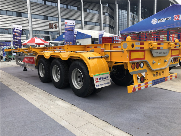 通亞公司開發(fā)出自動鎖緊裝置的集裝箱運輸半掛車,駕駛員無需下車在駕駛室內(nèi)即可操控轉鎖鎖緊集裝箱,省時、省力、大大提高工作效率并消除安全隱患。