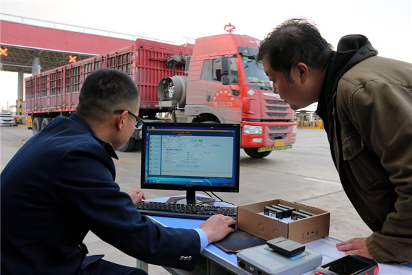 ETC快速發(fā)行網點的工作人員正在辦理記賬式貨車ETC。
