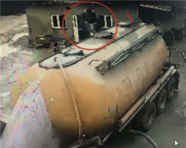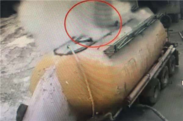 可以看到一輛水泥車正在工作,工作人員突然感覺水泥罐有些不對勁,于是爬到罐頂查看,只見罐頂的封口處有些漏氣,男子順便就擰動罐口,想要看看到底是什么原因,而就在男子左右檢查的時候,水泥罐口突然噴出強大的沖擊力將男子崩飛了出去,狠狠地摔在地上,造成男子當場死亡,這驚險的一幕正好被監控記錄下來。
